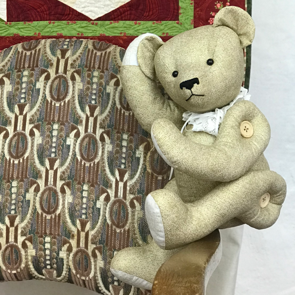 Zelf deze beer maken dat kan makkelijk met dit patroon. Kies de stoffen uit die u leuk vind. Bij het patroon vind u wel de knoopjes voor de ogen, de houten schijfjes om het hoofd te laten draaien en borduurgaren voor de neus.